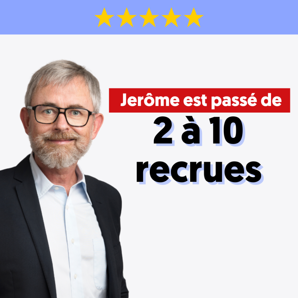 Oui. Nous avons une méthode spécifique, issue de l’expérience de Céline et Julien en tant que directeurs d’agence, qui permet de recruter rapidement : en général entre 5 et 10 collaborateurs en 3 mois (selon votre marché et votre structure).
